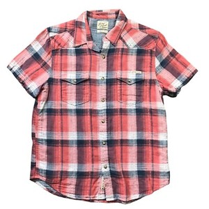 Lucky Brand Plaid Pearl Snap Western Shirt Men's Medium Short Sleeve 100% Cotton