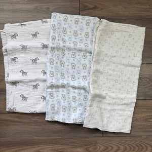 Mixed Brands Muslin Blanket Lot of 3 Gender Neutral Planets, Bears, Zebra Print