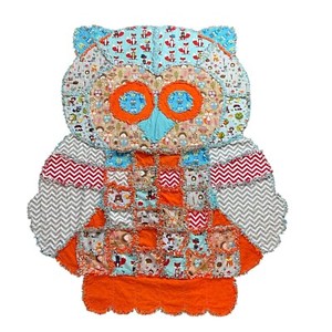 Handcrafted Quilted Owl Blanket Multicolor Woodland Patchwork Print 47in X 58 in