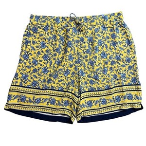 J. Jill Floral Print Shorts Womens XL 100% Rayon Elastic Waist Pockets Yellow