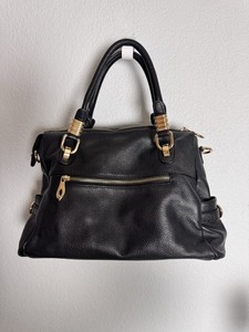 Kattee Black Pebbled Faux Leather Satchel Handbag with Gold Hardware