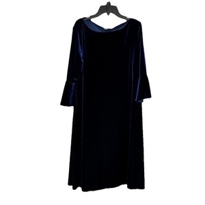 CHAPS Velvet Dress XL Navy Blue Bell Sleeve Midi Fairy Whimsigoth Party, Witchy