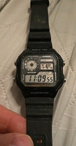 DIGITAL QUARTZ AE-1200WH BLACK MEN'S FULL WORKING CONDITION VINTAGE WATCH #129