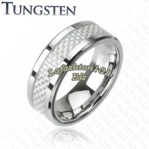 8mm Tungsten Mens Wedding Ring w/ White Carbon Fiber Inlay SZ 9,10,11,12,13