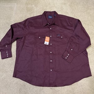Wrangler Men's Cowboy Cut Firm Finish Western Snap Solid Work Shirt Size 4XL