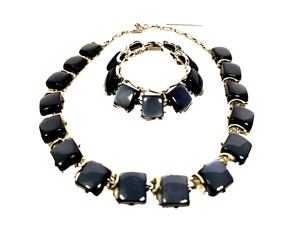 Vintage Coro Blue Thermoset Square Panel Necklace & Bracelet Silver Tone Signed