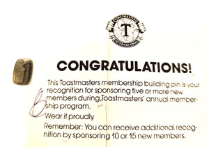 VTG Toastmasters International 5 Member Sponsor Pin Silver Tone Pin Back 15x8mm