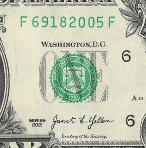Year Note 2005 in the Serial Number Trailing Position $1 Dollar Bill F69182005F