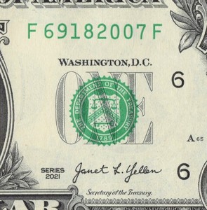 Year Note 2007 in the Serial Number Trailing Position $1 Dollar Bill F69182007F