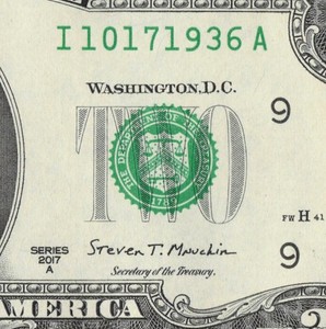 October 17th 1936 Birthday Note in the Serial Number $2 Dollar I10171936A