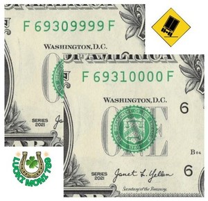 Rollover Notes 0999 1000 Lot of 2 Fancy Serial Number $1 Dollar Bill F6931F