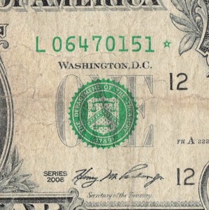 Year Note 2006 in the Serial Number Trailing Position $1 Dollar Bill F69182006F