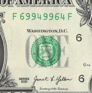 Trinary 4s 6s 9s Fancy Serial Number $1 Dollar Bill F69949964F
