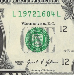 Year Note 2025 in the Serial Number Leading Position $1 Dollar Bill B20257536E