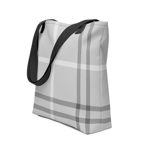 Gray Plaid Design Tote Bag