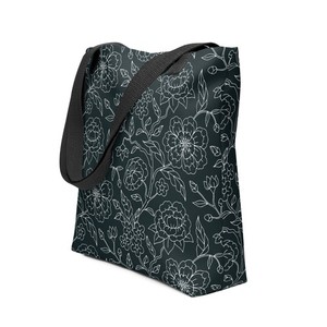 Black Floral Design Reuseable Tote Bag
