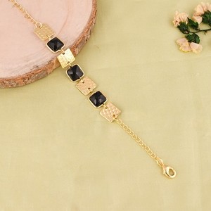 Black Onyx Stone 925 Sterling Silver Gold Plated Hammered/Flat Design Bracelets