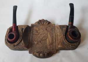 Vintage Syroco Wood Horse Racing Ashtray and Pipe Holder Made in USA