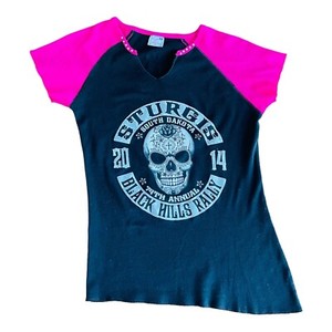 Vance Biker Wear Sturgis 2014 T-Shirt Girls XL Black Pink Skull 30" Chest