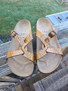 Birkenstock Birkis Sandals Alligator Print Cross EU 39 Copper Brown