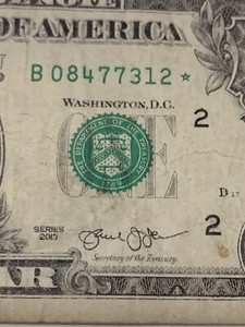 2013 B Duplicate Star Note B 08477312* Duplicated Serial Number Error DC Print