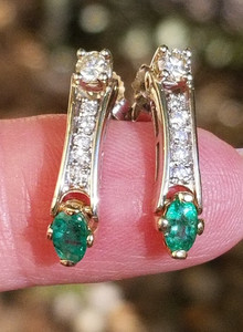 Beautiful Vintage Natural Diamond & Emerald 14k multi tone drop earrings