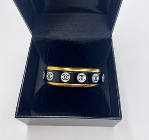 CHANEL Vintage 1998 Gold Plated Mother of Pearl & Resin CC Cuff Bracelet Y2K