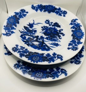 Flow Blue Ashworth Bros -YEDO- Plate Bowl set Antique 1896 Impressed Marks 10in