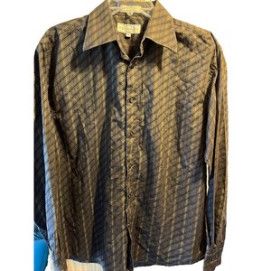 Eighty Eight Men's M Brown Striped LS Button Down Cotton Polyester Blend Shirt
