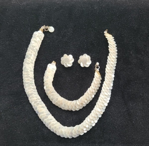 Mother of Pearl Sequin Choker Bracelet & Earnings Set Hand Crochet Back