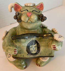 Vintage Money Cat Figurine "In Cats We Trust" Whimsiclay by Amy Lacombe 2002