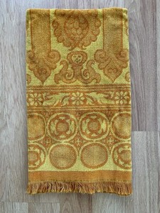 Vintage Sears Bath Towel Orange Yellow Cotton Linen 44” x 25” Patterned Fringed