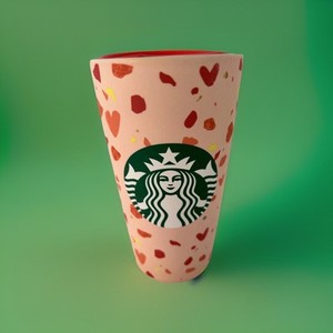2019 Starbucks Pink Travel Tumbler Coffee Mug & Lid 12oz Hearts Valentines Love