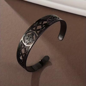 Witch Celtic Knot Bracelet Stainless Steel Adjustable Open Cuff Black Metal