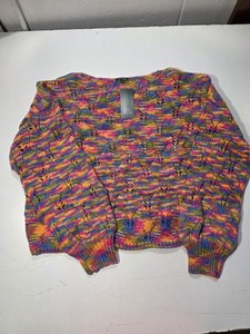 Wild Fable Cropped Knit Pullover Sweater Multi Color Bright Yarn Pattern XL
