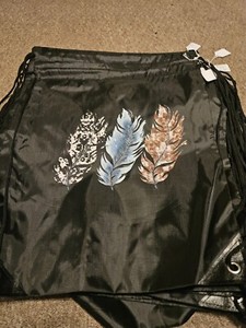 New Feather, Black Drawstring Bag.