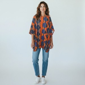 Audtions Boho Print Poncho Top Orange Blue Gray Casual Oversized