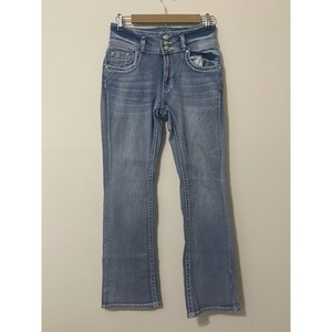 SKY Women's Rhinestone Cross Bootcut Jeans Size 7/8 Blue Denim Embellished