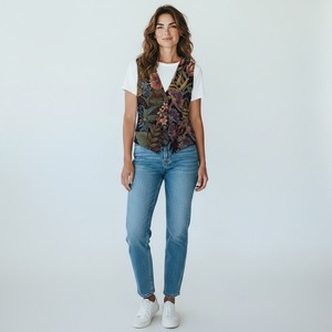 DONCASTER Vintage Boho Artistic 90's Tapestry Floral Vest Size 2 Multi Color