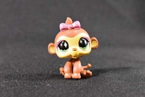 MONKEY #600 - Authentic Littlest Pet Shop - LPS pink bow diamond eye