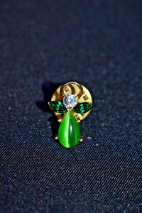Vintage Two Tone Green Angel Pin Gold Halo