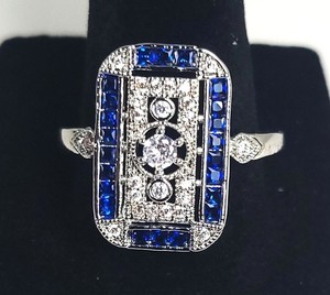 Gorgeous Art Deco Vintage Style Platinum FN Lab Created Diamond & Sapphire Ring
