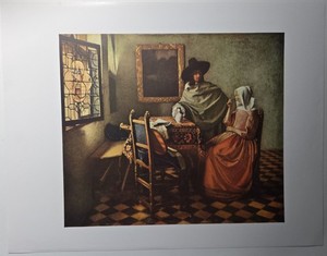 Vintage Lithograph Art Print Man & Woman Drinking Wine Johannes Jan Vermeer