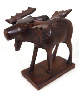 Vintage Hand Carved Moose Sculpture Figurine Dark Wood Large Antlers Pedestal