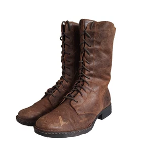 Born Women's Combat Moto Biker Boots Size 9 Brown Leather Lace Up/Size Zip Up
