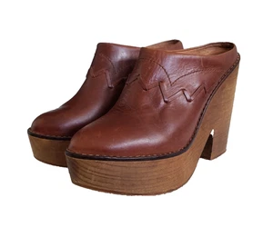 Free People Chance Platform Wooden Clogs Brown Size 7.5 EU Sz 38 Genuine Leather