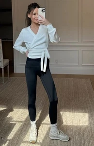 Spanx Air Essentials Ballet Wrap Top Long Sleeve Blouse Shirt White Size Medium