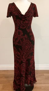 Y2k Dark Floral Cowl Neck Beaded Ruffle Maxi Dress Sz 16 Fairy Grunge Whimsigoth