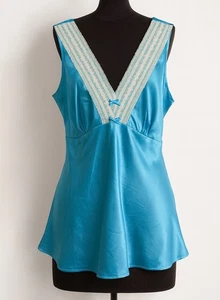 Old Navy Y2K 100% Silk Blue Cami Babydoll top lace trim Fairy Coquette Sz XL