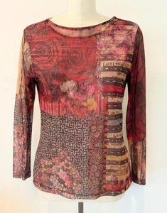 Db Sport Y2k 90s Sheer Mesh long sleeve Floral Graphic Print Shirt Size M